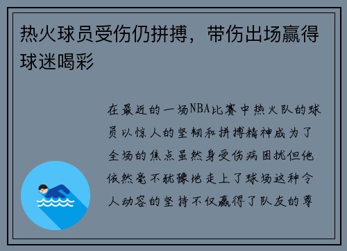热火球员受伤仍拼搏,带伤出场赢得球迷喝彩